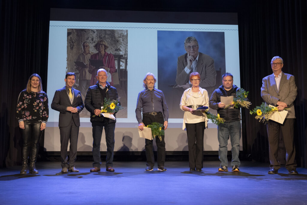 Foto (od leve): Tereza Gosar, članica odbora za nagrade, David Ahačič, predsednik ZKO Tržič, Peter Guček, Viktor Klofutar, Vesna Štefe, Peter Balantič in Boris Kuburič (foto: Sergej Radosavac).